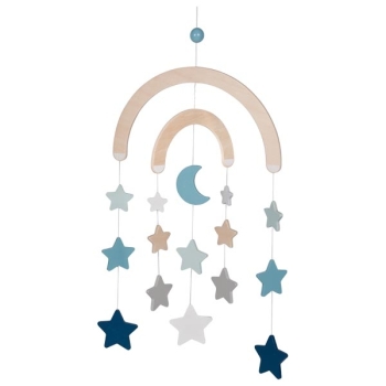 Mobil måne och stjärnor av trä GOKI azure