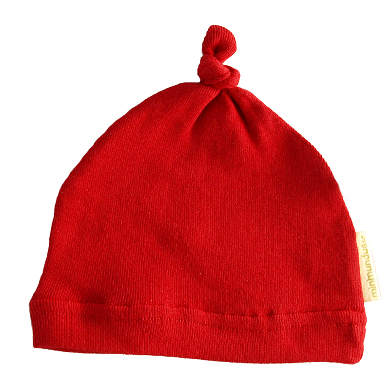 Babymössan av ekologisk bomull har några få, mycket mjuka sömmar och passformen är följsam så den sitter bra på plats även när babyn vrider på huvudet, kanar inte ner över ögonen.