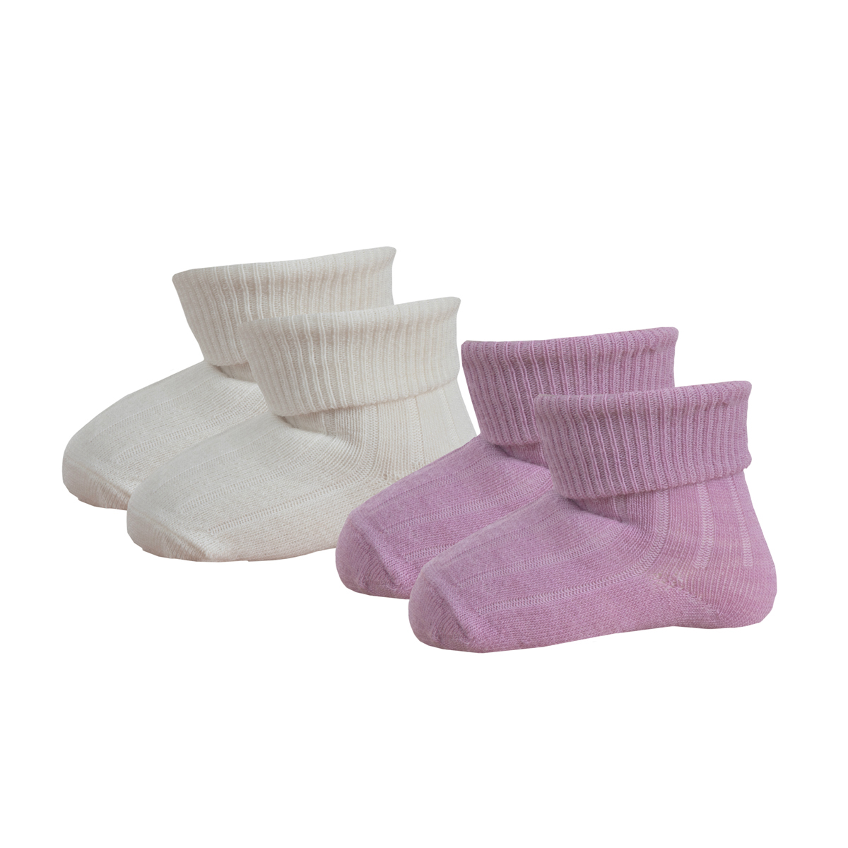 Babystrumpor av merinoull 2-pack rosa och ullvita