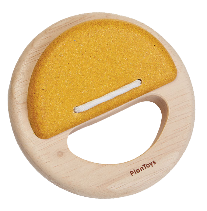 Rytminstrument kastanjett av trä. Ekologisk tillverkning från PlanToys. Av massivt trä kombinerat med PlanWood® Lätt att hantera. Ruska lite och du får ett lagom klapprande ljud. Härliga, naturliga färger! Utvecklar barnets sinne för rytm och ger en tidig introduktion till slagverk. Lätt att hålla i för en liten hand. Tillverkad av en kombination av massivt gummiträ och PlanWood®