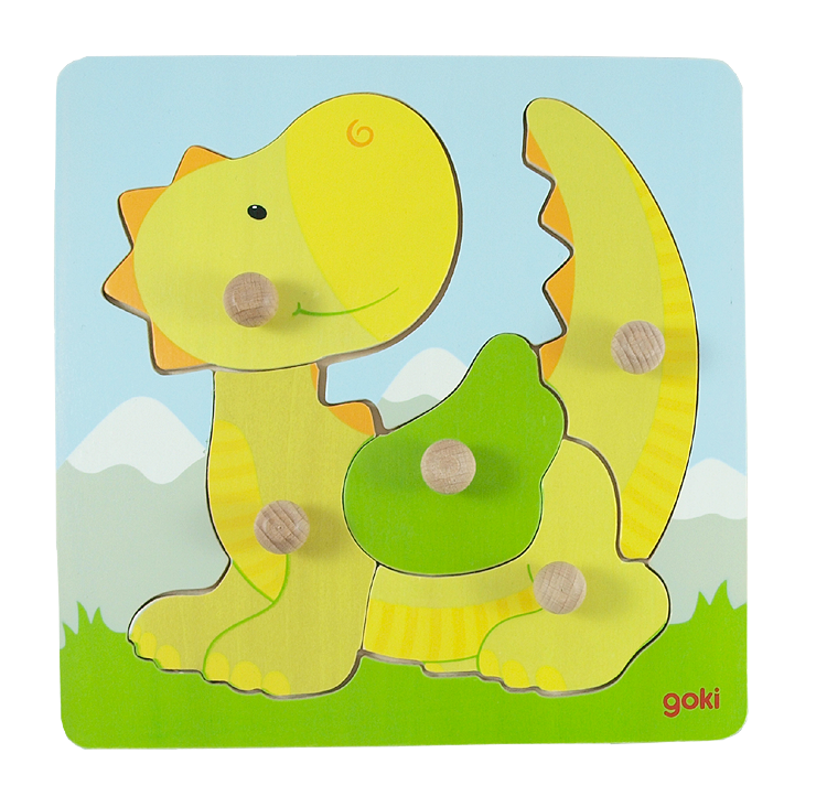 Favoritpussel för det lilla barnet. En enkel bild av en drake skall pusslas ihop av 5 bitar. Lite svårare än att bara placera en bit på varje plats. Rejäla knoppar som är enkla att greppa.