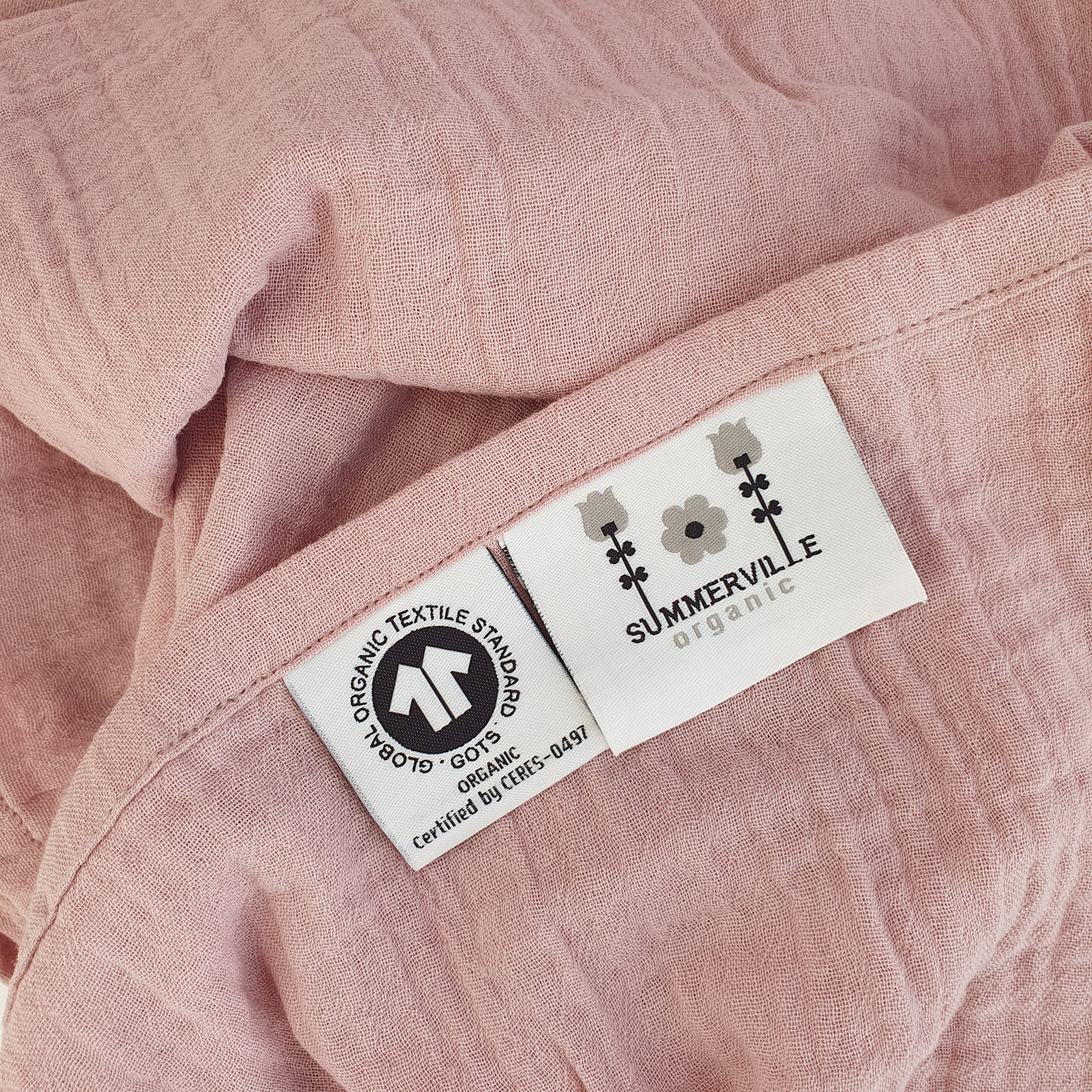 Denna babyfilt i flera lager krinklad, ekologisk bomullsmuslin från Summerville organic har en fin struktur och passar lika bra i vagnen som i vaggan, sängen eller som snuttefilt.