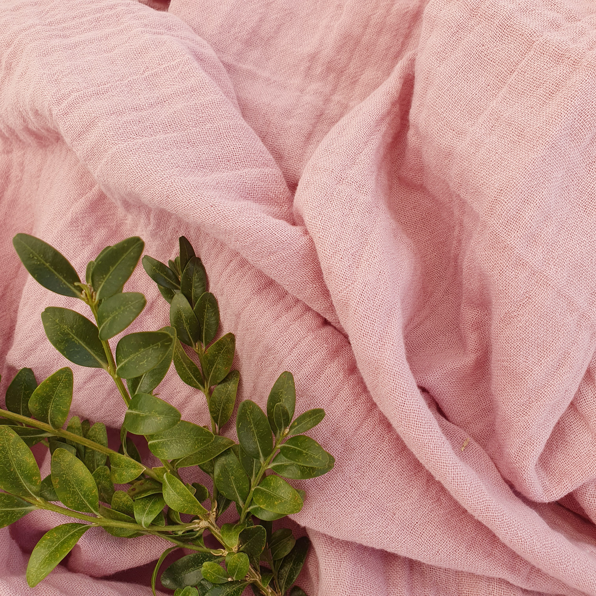 Krinklad bomullsmuslinfilt 120 x 120 rosa