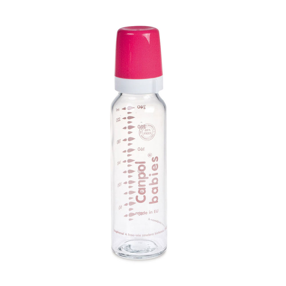 Canpol nappflaska glas 240 ml rosa, 1 st