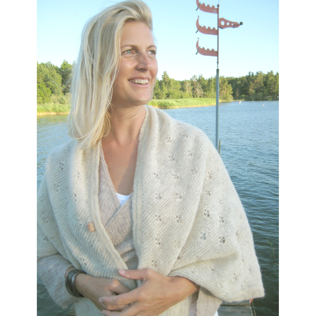 Sirri grovstickad sjal från Färöarna, ullvit