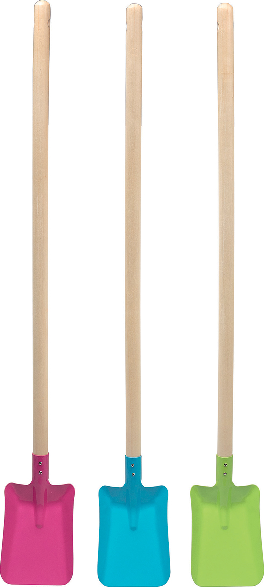 Material: Träskaft av poppel. Skaftet är lackat med ett tunt lager vattenbaserad giftfri lack. Spadblad av plåt. Färgen är godkänd enligt leksaksdirektivet EN71-3 fri från blyfri, ftalater, pah och andra farliga kemikalier.